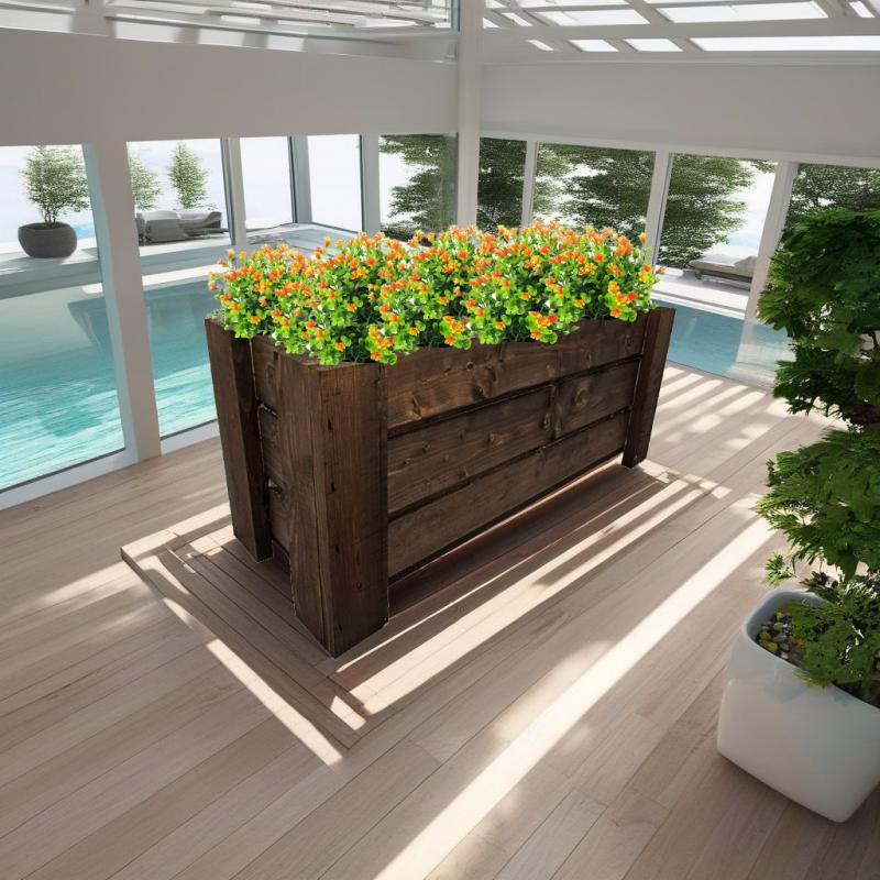 Drewniana doniczka na kwiaty jest idealnym uzupełnieniem każdego ogrodu i tarasu. Drzewo sosnowe z nielicznymi zdrowymi sękami podkreśli każdą aranżacje. Do każdej doniczki dołączamy czarny wkład foliowy na ziemię aby nie było styczności mokrej ziemi z doniczką. Do nadania koloru donicom używamy farb wodnych ( hydrofobowych) dzięki nim donice drewniane sprawdzą się w warunkach zewnętrznych nie tracąc swojej intensywności koloru. Jakość za rozsądną cenę.