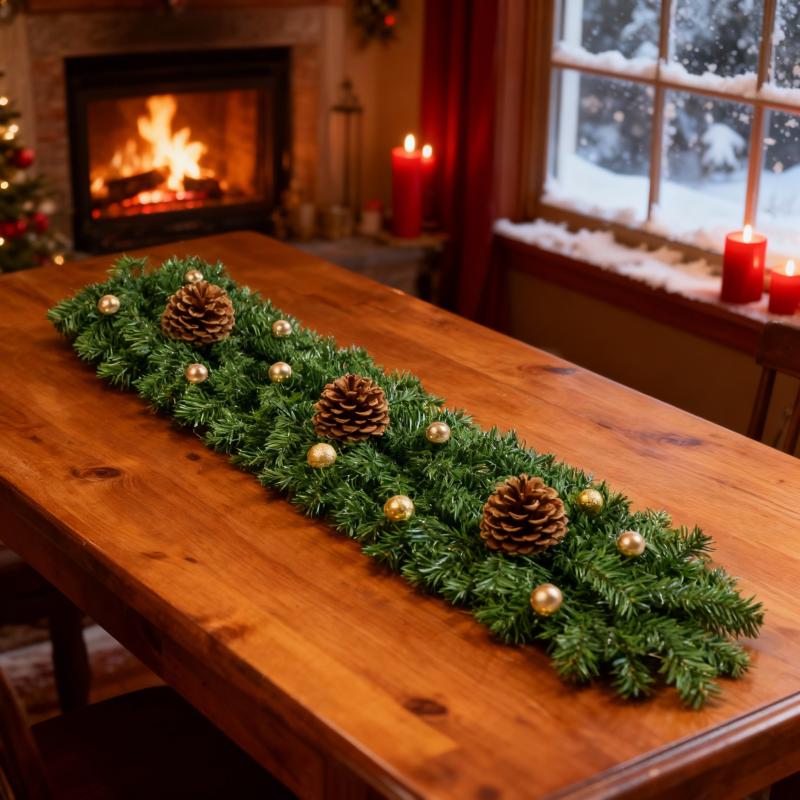 Girlanda świąteczna diamentowa złote szyszki + złota jarzębina 100 cm