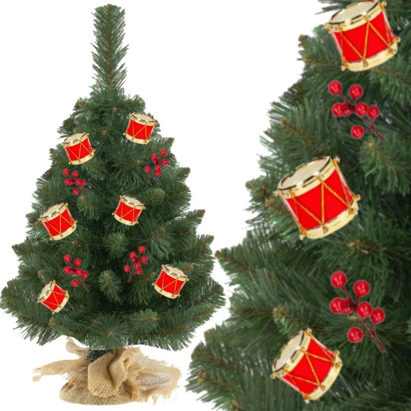 Ta kompaktowa choinka o wysokości 50 cm to idealne rozwiązanie do domu, biura lub na prezent. Wykonana z gęstych, realistycznych gałązek, ozdobiona bębenkami imitujące bombki i , tworzy przytulny świąteczny klimat w każdej przestrzeni.
