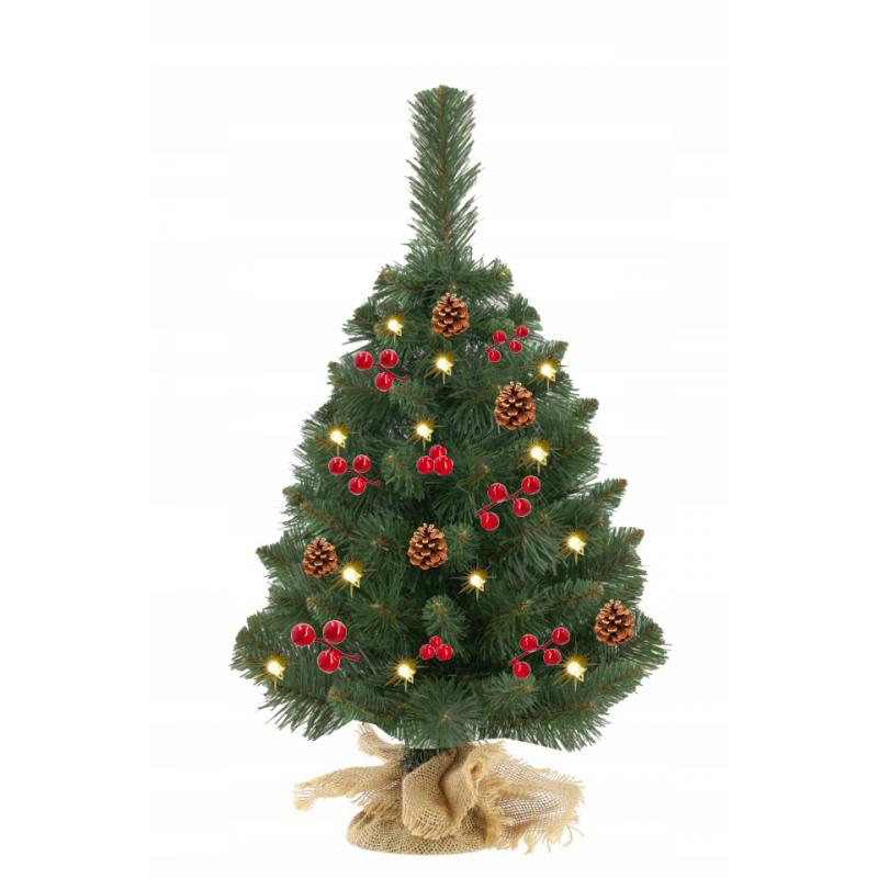 Wyjątkowa dekoracja świąteczna! Mała, urocza sztuczna choinka w doniczce otulona workiem z juty to idealna ozdoba na parapet okna, stół czy biurko.