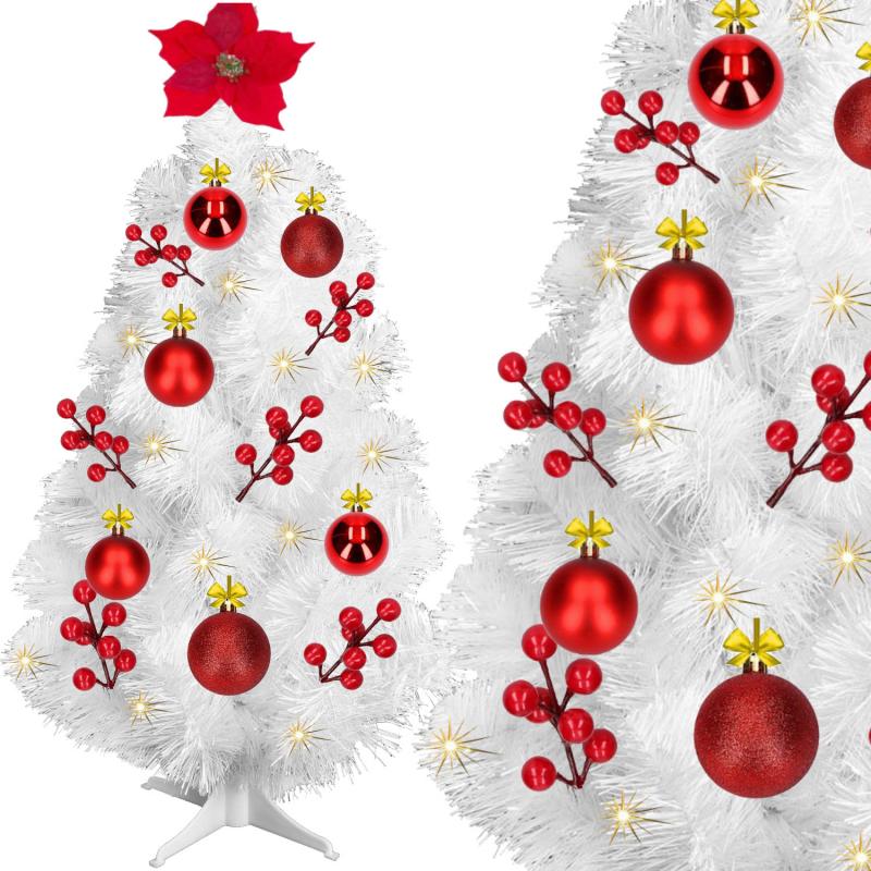 Ta kompaktowa choinka o wysokości 50 cm to idealne rozwiązanie do domu, biura lub na prezent. Wykonana z gęstych, realistycznych gałązek, ozdobiona czerwonymi bombkami , czerwoną gwiazdą betlejemską oraz jarzębiną , tworzy przytulny świąteczny klimat w każdej przestrzeni.