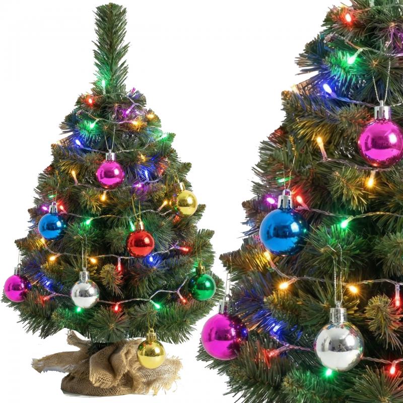 Wyjątkowa dekoracja świąteczna! Mała, urocza sztuczna choinka w doniczce otulona workiem z juty to idealna ozdoba na parapet okna, stół czy biurko.
